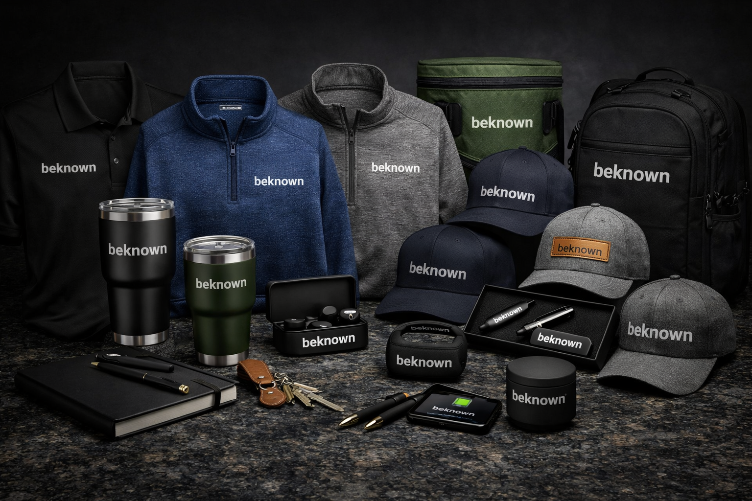 Beknown+ connects our clients to an extended network of premium promotional products and custom merchandise. From trade show giveaways and branded event materials to corporate gifts and specialty items, we help you source the right products while maintaining the same clear communication and dependable service Beknown is known for.