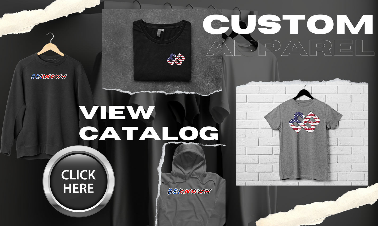 T-shirts, hoodies, dry fit and more - all available from Beknown! Low minimum orders and premium quality gear.